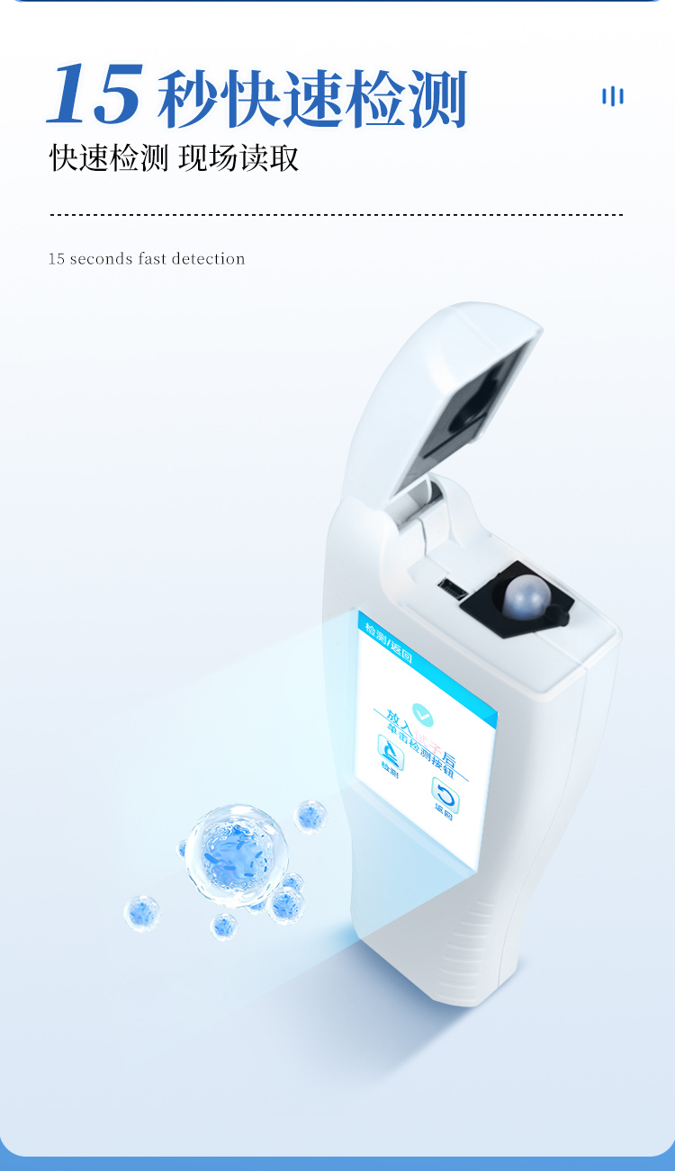該設(shè)備為全新升級產(chǎn)品,大屏幕觸摸顯示屏,代替?zhèn)鹘y(tǒng)按鍵。操作采用生物化學(xué)反應(yīng)方法檢測ATP含量,ATP熒光檢測儀基于螢火蟲發(fā)光原理,利用“熒光素酶—熒光素體系”快速檢測三磷酸腺苷(ATP)。ATP拭子含有可以裂解細(xì)胞膜的試劑,能將細(xì)胞內(nèi)ATP釋放出來,與試劑中含有的特異性酶發(fā)生反應(yīng),產(chǎn)生光,再用熒光照度計檢測發(fā)光值,微生物的數(shù)量與發(fā)光值成正比,由于所有生物活細(xì)胞中含有恒量的ATP,所以ATP含量可以清晰地表明樣品中微生物與其他生物殘余的多少,用于判斷衛(wèi)生狀況。