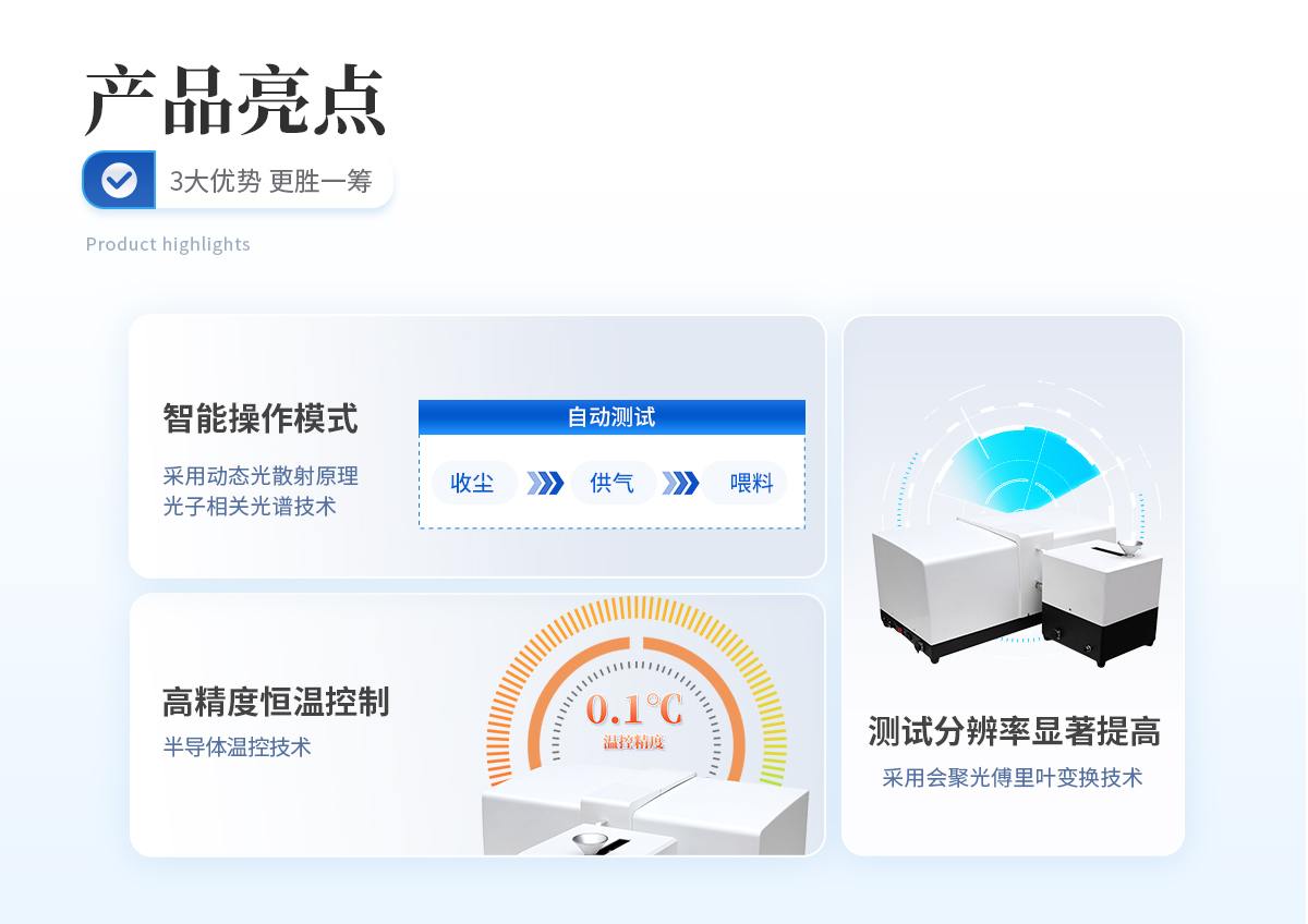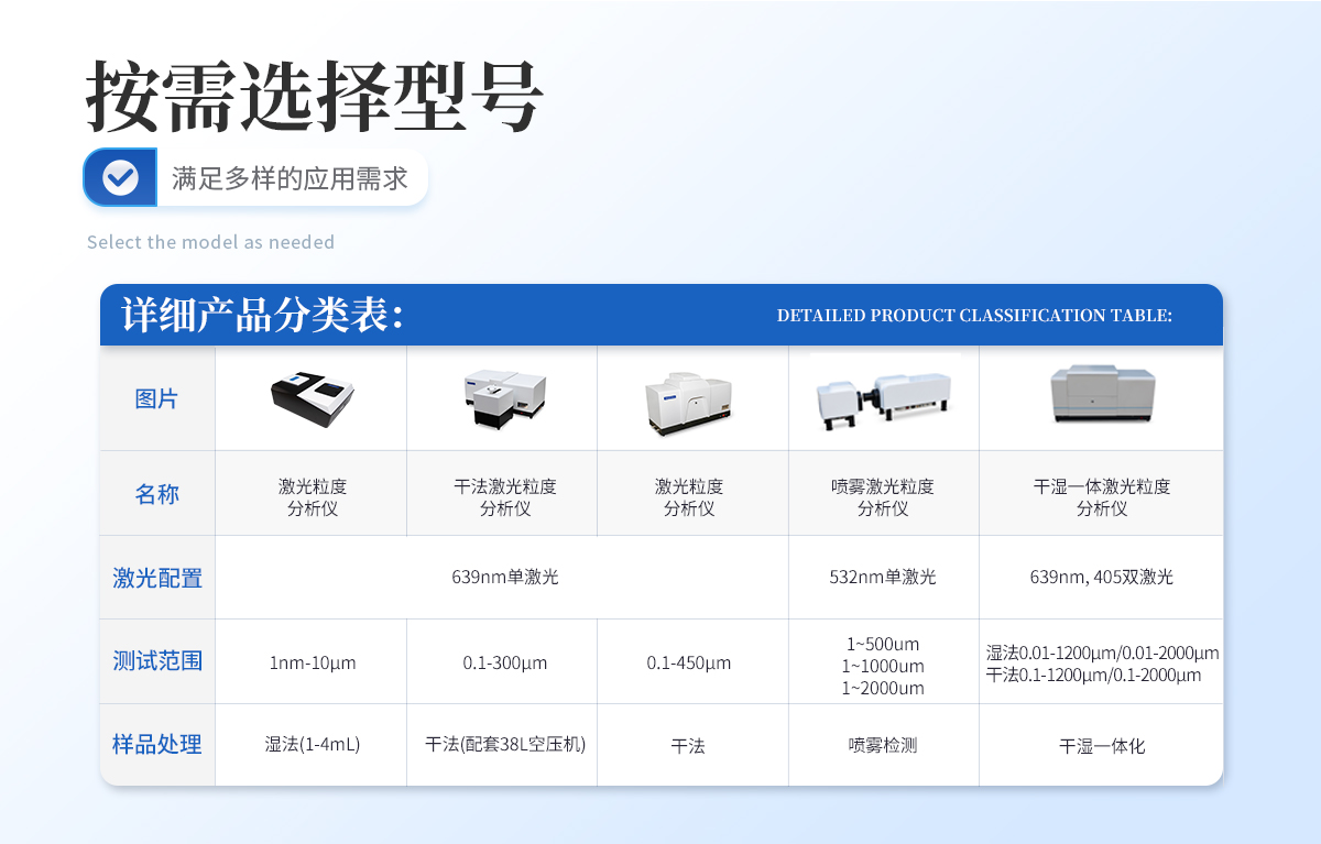 | 干濕一體化設計 本款儀器將濕法與干法測試集成于一體,成功解決了干濕法一體化的各項技術問題,能夠實現干濕一鍵切換,使用快捷方便,是**顆粒測試、研究的**選擇。 | 全內置分散系統 使用大功率循環泵,對管路進行優化設計,使整體控制協調性達到**水平,有效的防止了大顆粒的二次沉淀。 | 無約束自由擬合技術 運用無約束自由擬合技術,粒度分析不受任何函數的限制,可真實反映顆粒的分布狀態。 | 光路設計 采用會聚光傅立葉變換技術,使散射光不受透鏡孔徑限制;采用雙譜面光路設計,有效擴大測量范圍至2000微米;雙激光正交光路使用半導體輔助激光器測量側向散射0.0155度至164度,將測量范圍進一步擴展。 |