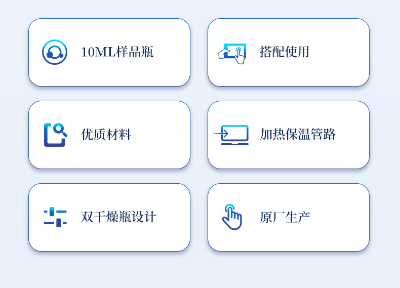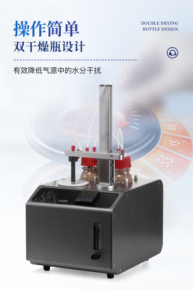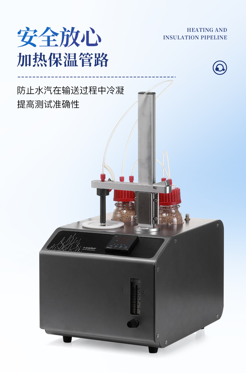 | 1、10ml樣品瓶:使用四氟與硅膠復(fù)合墊片,高溫條件下不會釋放可能產(chǎn)生副反應(yīng)的物質(zhì) | 2、雙干燥瓶設(shè)計,有效降低氣源中的水分干擾 | 3、加熱保溫管路,防止水汽在輸送過程中冷凝,提高測試準(zhǔn)確性 |