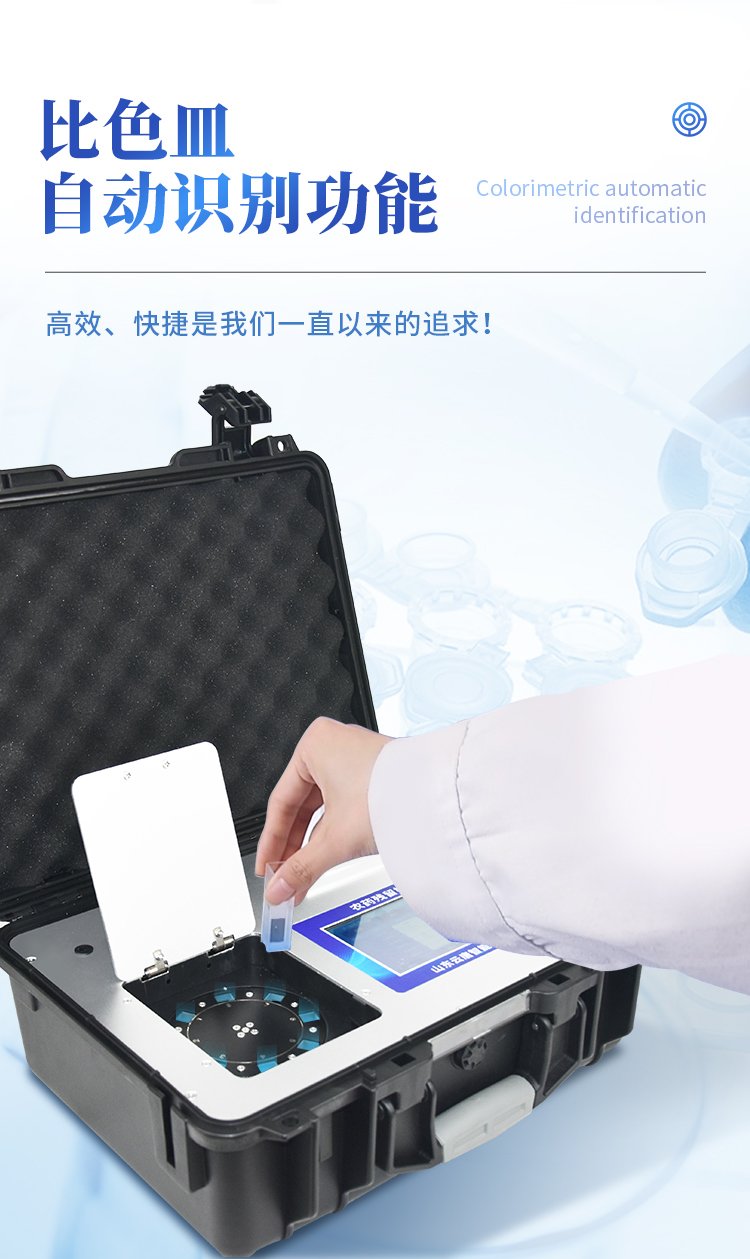 | 機器采用全新安卓智能系統,主控芯片采用 ARM Cortex-A7,RK3288/4核處理器,主頻1.88Ghz,運轉速度更快速,穩定性更強。 | 創新檢測模式: *儀器采用精密旋轉比色池設計,使用光源一致,可以解決各通道間由于光源誤差帶來的檢測結果誤差問題,檢測結果更加精準。 *儀器具有自動識別比色皿檢測功能,即:將樣品比色皿放入儀器后,點擊樣品檢測,儀器自動識別比色皿進行通道檢測。 | 供電方式:交直流兩用,直流 12V 供電,可連接車載電源,可配 6ah 大容量充電鋰電池,方便戶外流動測試。 | 顯示方式:7英寸液晶觸摸屏顯示,人性化中文操作界面,讀數直觀、簡單。 | 檢測通道:8個檢測通道,可以同時測試多個樣品,循環檢測,即放即檢,每個樣品由程序控制分別獨立工作,不會互相干擾。 | 高精光源系統: ①①儀器光源采用進口超高亮發光二極管,光源亮度可以自動調節與校準 ②智能恒流穩壓,光強自動校準,長時間連續工作光源無溫漂現象。 | 智能操作分析系統: ①儀器具有100多種蔬菜名稱菜單庫,分類管理,并可按需添加或刪除、編輯蔬菜名稱;可在同一檢測界面自動對應相關檢測通道一次性選擇1-24個樣品名稱,無需退出界面,節省操作時間。 ②內置新國家限量標準,與所測結果進行現場比對,并持續更新標準。 | 完善的配套硬件: ①采用串口5v打印機,可選擇手動打印或者自動打印,三分鐘出打印結果,打印格式為檢測人姓名、吸光度差值、檢測時間、檢測機構、樣品名稱及結果判定。 ②儀器具有無線上傳模塊,檢測結果可批量打印,批量上傳。 | 數據調用: ①儀器可存儲20萬條檢測結果, ②檢測結果為Excel表格,方便后期進行數據分析與匯總報告 ③儀器采用USB2.0接口設計,支持 U 盤存儲,方便數據的存貯和移動,并可隨時與計算機直接相連,實現數據查詢、瀏覽、分析、統計、打印等。 | 后期產品固件可升級。 | 安全證書,放心保障:儀器具有中國計量科學研究院校準證書,權威認證,使用放心。 |