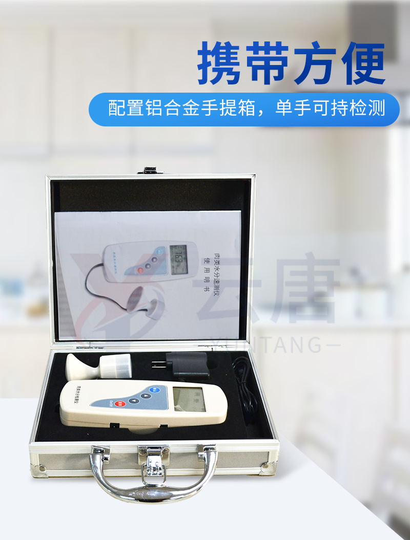 肉類水分檢測儀主要用于快速豬肉、牛肉、雞肉等動物肉類水分含量,從而判斷所測樣品是否為注水肉,該儀器設計精巧,單手可持,儀器可根據測定對象的品種,設定相應的判斷標準值。
