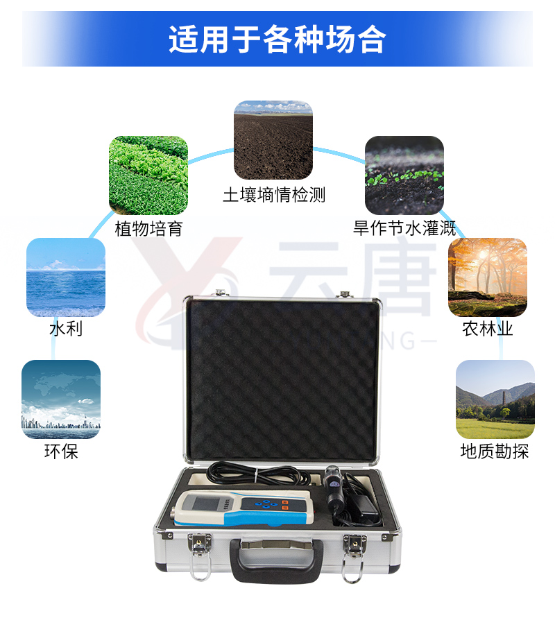 土壤水分測(cè)定儀采用FDR頻域反射原理,快速準(zhǔn)確測(cè)量土壤中含水量,可對(duì)多處樣地、不同土壤深度的水分含量進(jìn)行快速檢測(cè)和長(zhǎng)期連續(xù)監(jiān)測(cè)。廣泛應(yīng)用于土壤墑情檢測(cè)、旱作節(jié)水灌溉、精細(xì)農(nóng)業(yè)、林業(yè)、地質(zhì)勘探、植物培育等領(lǐng)域。