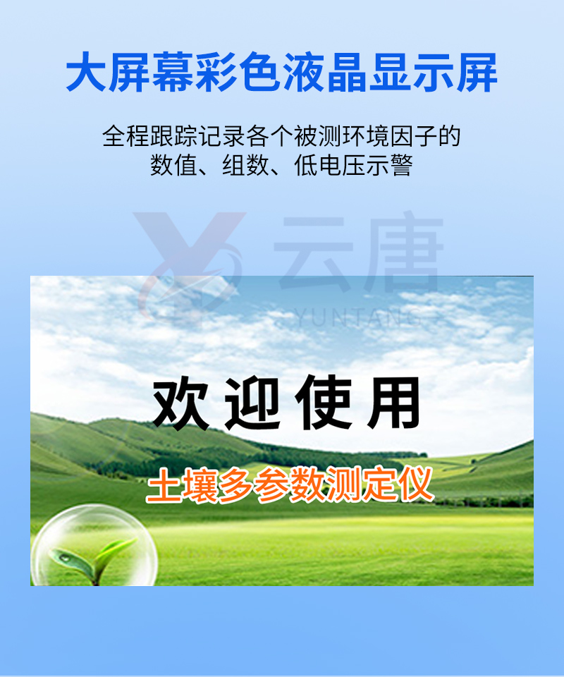 4、大屏幕中文液晶顯示,可實(shí)時(shí)顯示溫度值、水分值、組數(shù)、低電壓示警,存儲(chǔ)數(shù)據(jù)等,便于野外攜帶作業(yè)。