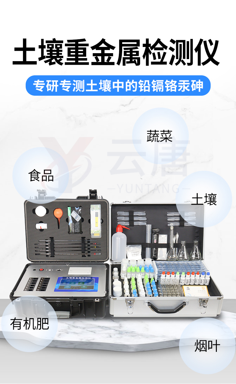 土壤重金屬污染問題日益嚴重,造成土壤耕作層內的鎘、銅、砷、鉻、汞、鐵、鋅、錳、銅、鋁等重金屬大量富積、積累,成為當下面臨的主要環(huán)境問題之一。土壤中的重金屬通過在作物體內富集進入食物鏈,對人畜健康造成嚴重威脅。有色金屬礦山的開采、 工業(yè)“三廢”的排放、含重金屬廢棄物堆積、農(nóng)業(yè)生產(chǎn)中的污水灌溉,農(nóng)用化學藥品的不合理使用等,都可能導致有害重金屬元素直接或間接進入土壤,導致土壤、作物、果蔬、水質、水產(chǎn)品等重金屬含量嚴重超標。但是當前重金屬測定方法測定速度慢、步驟繁瑣且儀器昂貴。基于這種形勢,我們開發(fā)出了重金屬快速測定方法。