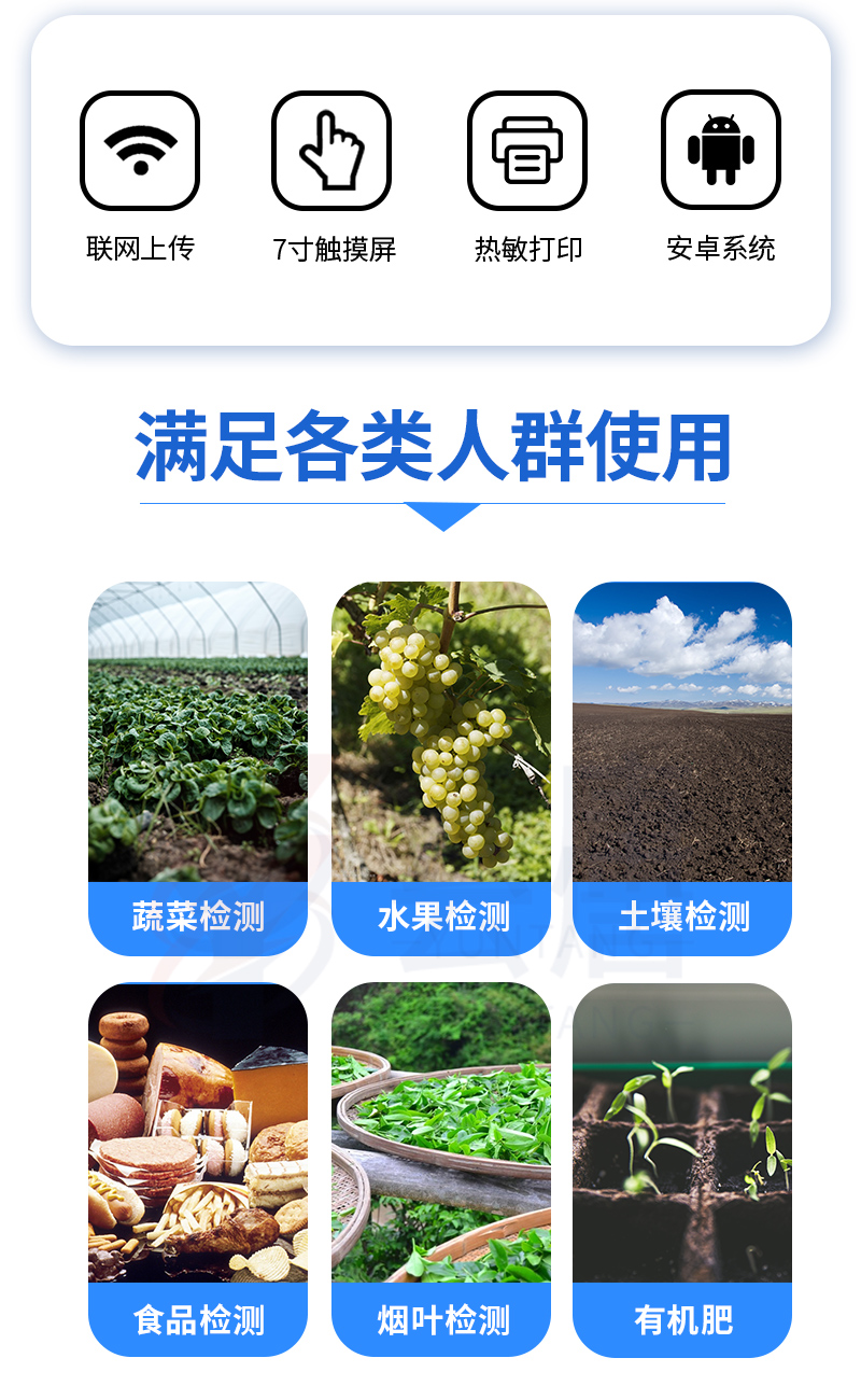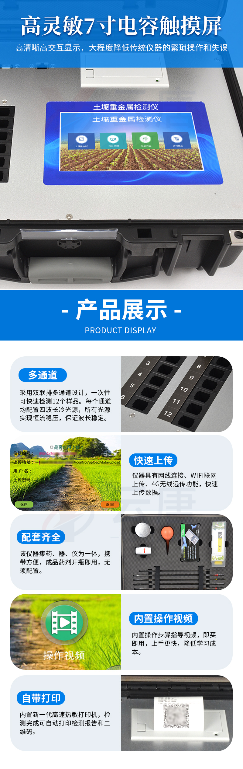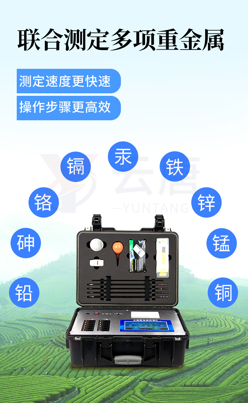 可對土壤、肥料、作物、蔬菜、水果、水質、食品等樣品中的砷、鉛、鎘、鉻、汞、鐵、鋁、鋅、錳、銅等進行快速聯(lián)合測定。